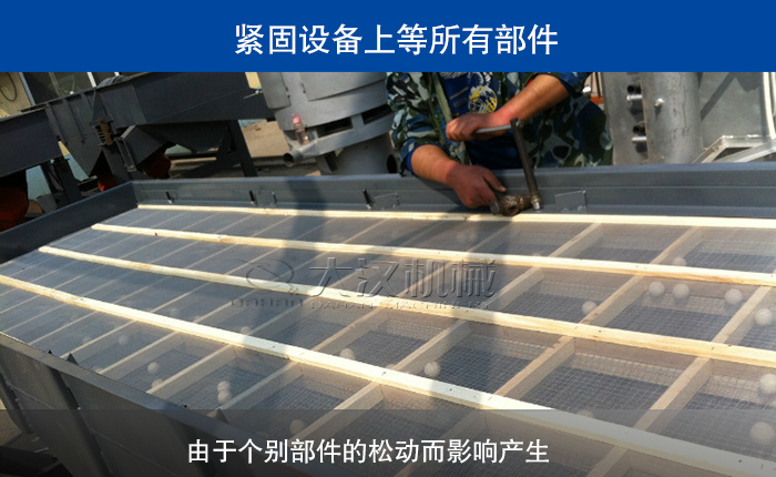 對重型振動篩設(shè)備上的所有部件進(jìn)行排查,看看是否出現(xiàn)松動,并及時加以緊固,特別是需要經(jīng)常更換的篩板,避免由于個別部件的松動而產(chǎn)生的額外振動。