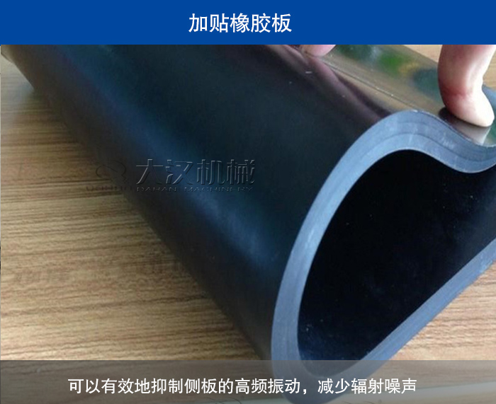 在篩箱的側(cè)板、入料給料口、排料口和接料底盤內(nèi)加貼橡膠板,這樣可以有效地抑制側(cè)板的高頻振動,減少輻射噪聲。