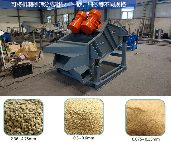 機制砂礦用振動篩是用于機制砂生產(chǎn)中對機制砂原料篩分和除雜的機器,通過電機產(chǎn)生的高頻振動力實現(xiàn)不同粒徑的機制砂原料的分級和分離,這樣可以保證成品機制砂的粒度符合標準;礦用振動篩主要用于對巖石、卵石或礦山尾礦經(jīng)破碎后的機制砂原料進行篩分,可以將機制砂篩分為粗砂、中砂、細砂以及去除當中的石粉,可用于篩分0.075mm-200mm的機制砂原料,每小時處理量從10噸到500噸,適合不同產(chǎn)量和精度要求的生產(chǎn)場景使用。