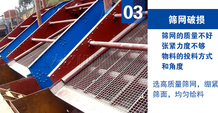 解決方法:① 需要選擇高質(zhì)量的圓振動(dòng)是啊篩網(wǎng)。② 在安裝篩面時(shí),需要盡量將篩面繃緊。③ 均勻給料,控制給料速度。