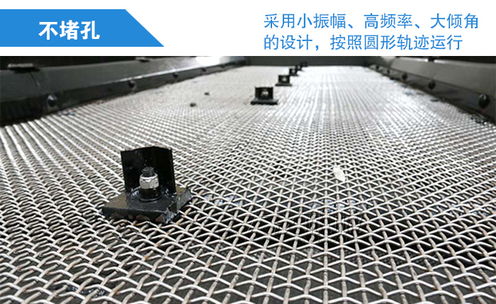 圓振動篩采用小振幅、高頻率、大傾角的設(shè)計(jì),按照圓形軌跡運(yùn)行,篩面上的礦石不斷翻轉(zhuǎn)和松散著向前前行,小顆粒的鐵礦石有更多機(jī)會透過物料層并完成篩分,同時圓形軌跡還可使卡在篩孔中的物料跳躍出來,避免了篩孔堵塞,提升了整臺設(shè)備的篩分效率。
